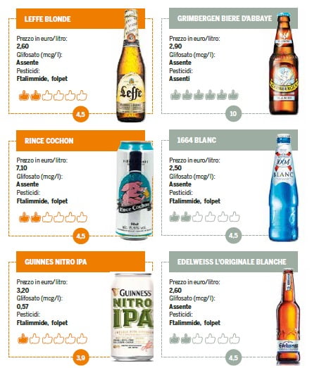 Grazie a Il Salvagente possiamo capire anche la situazione della birra al glisofato in Italia. Loro hanno preso in esame le birre più vendute in Italia ed hanno pubblicato sul proprio mensile i risultati dell’indagine in italiano (li trovate qui sotto).