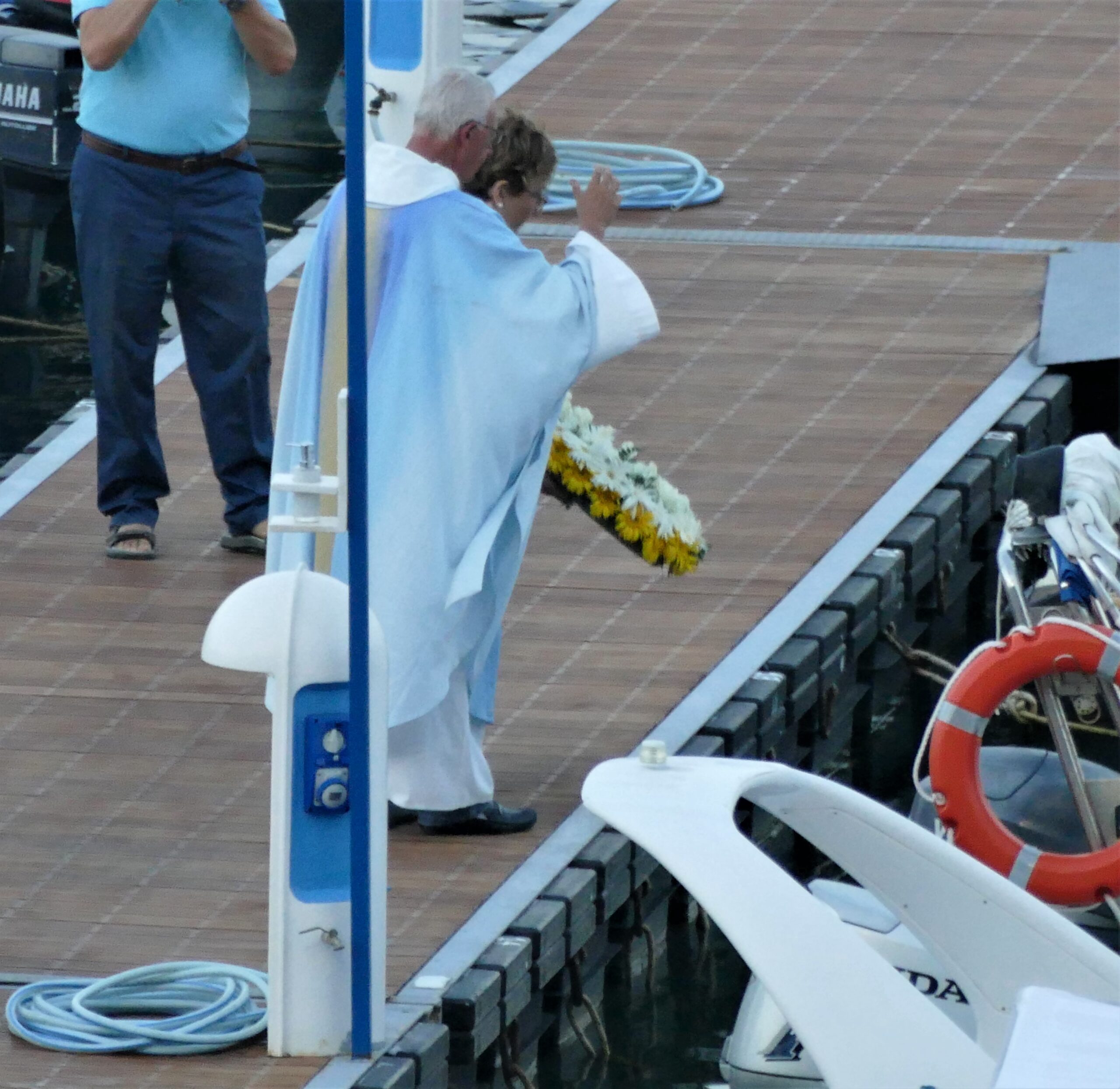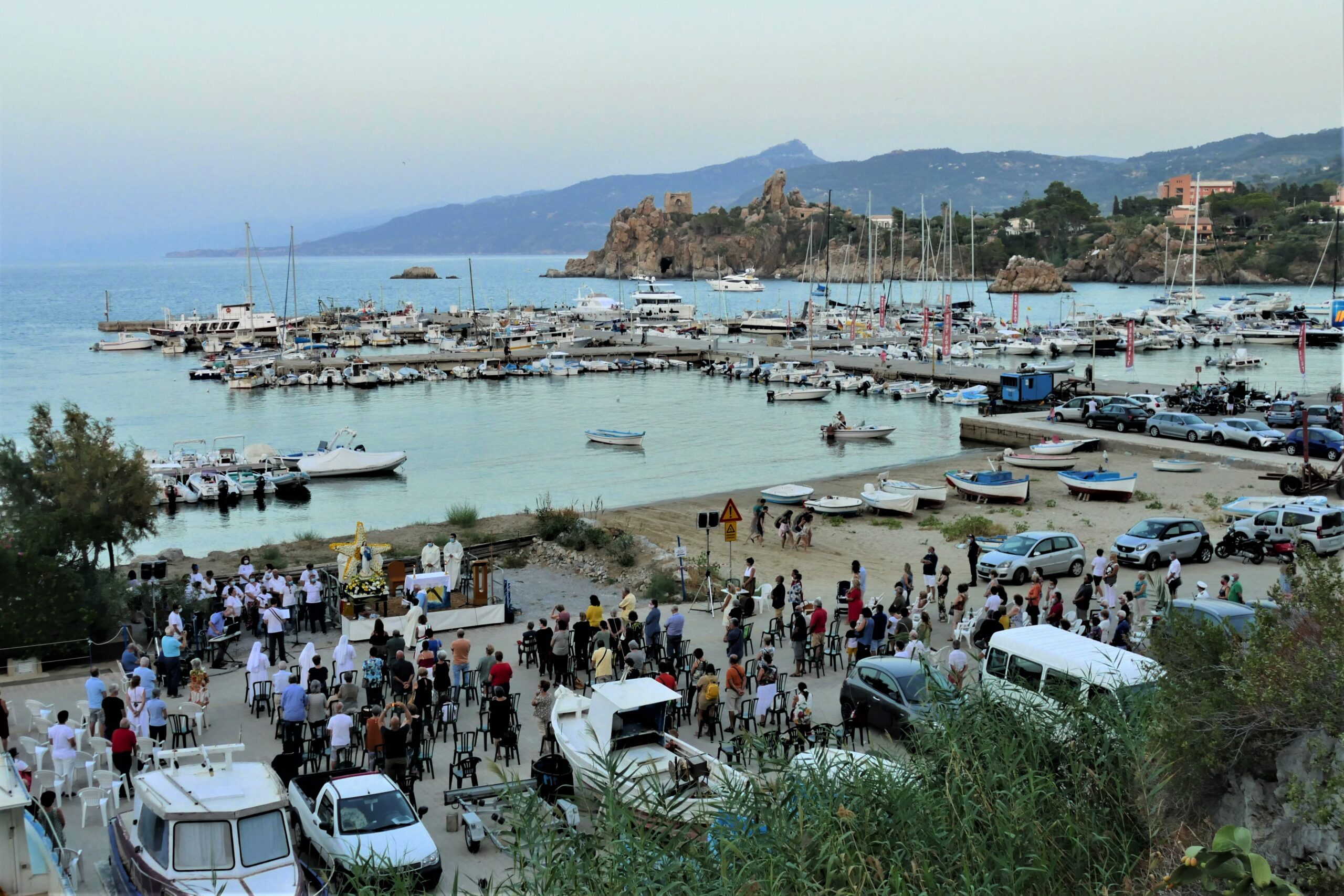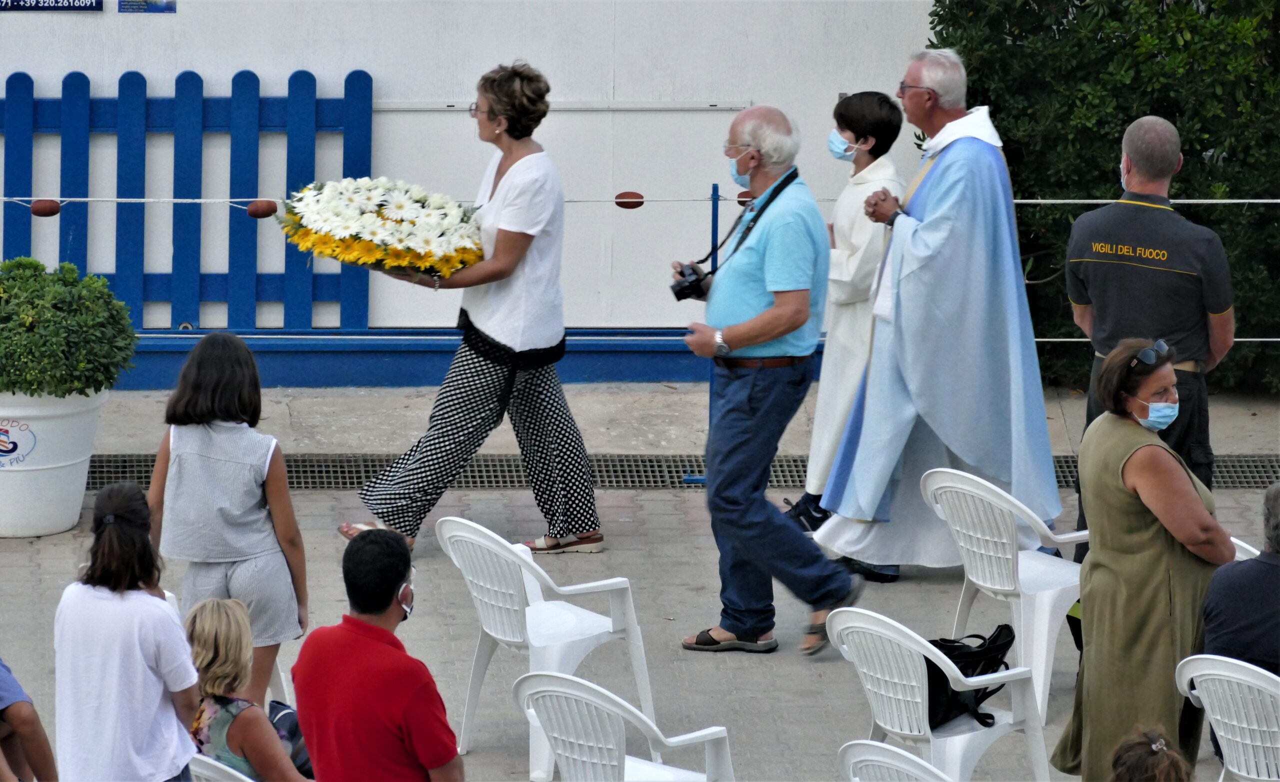 Vigilia della Festa dell’Assunta: Solenne Celebrazione Eucaristica al Porto di Presidiana. Ha celebrato il Parroco don Pino Cigno. A conclusione della Celebrazione Omaggio Floreale alle vittime del Mare. Presenti le Autorità Civili e Militari.