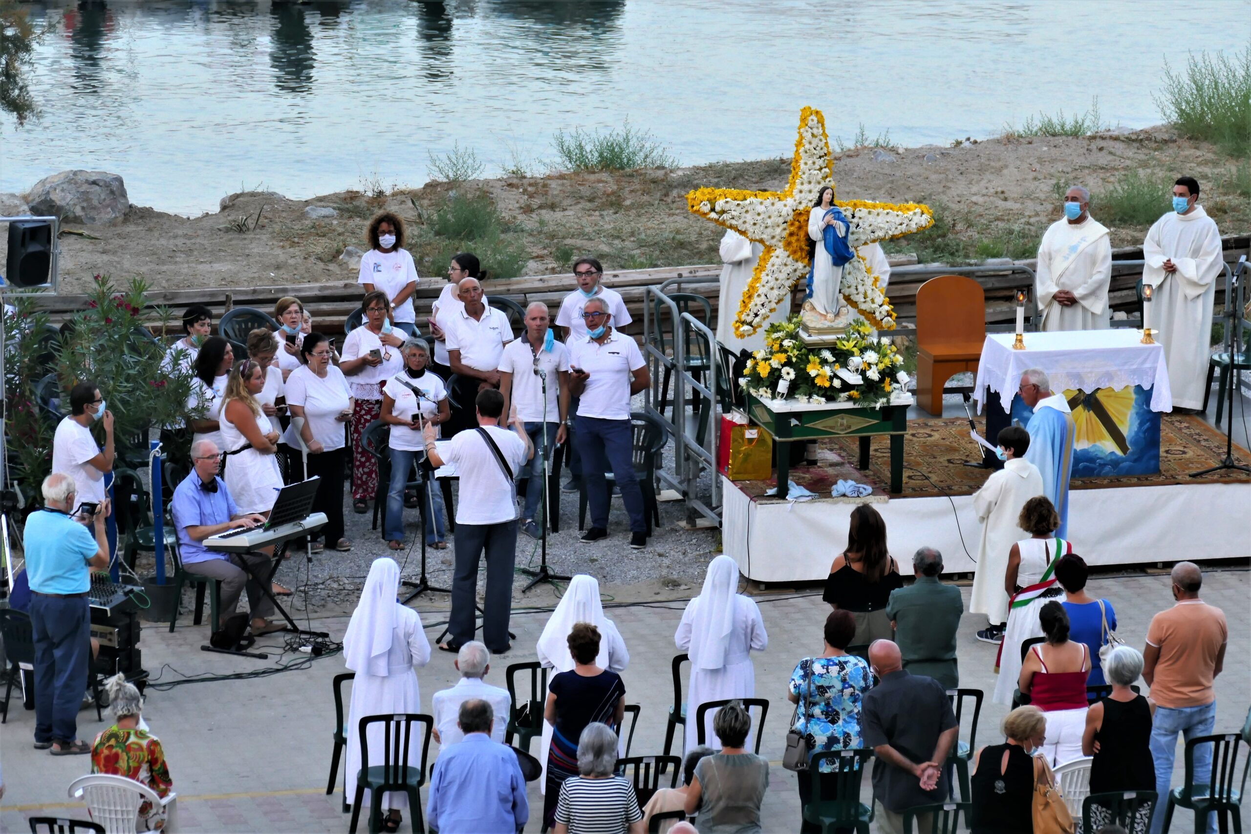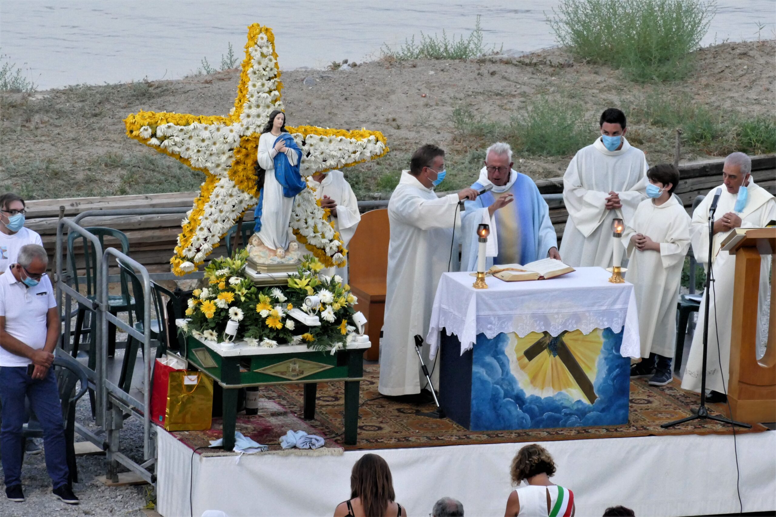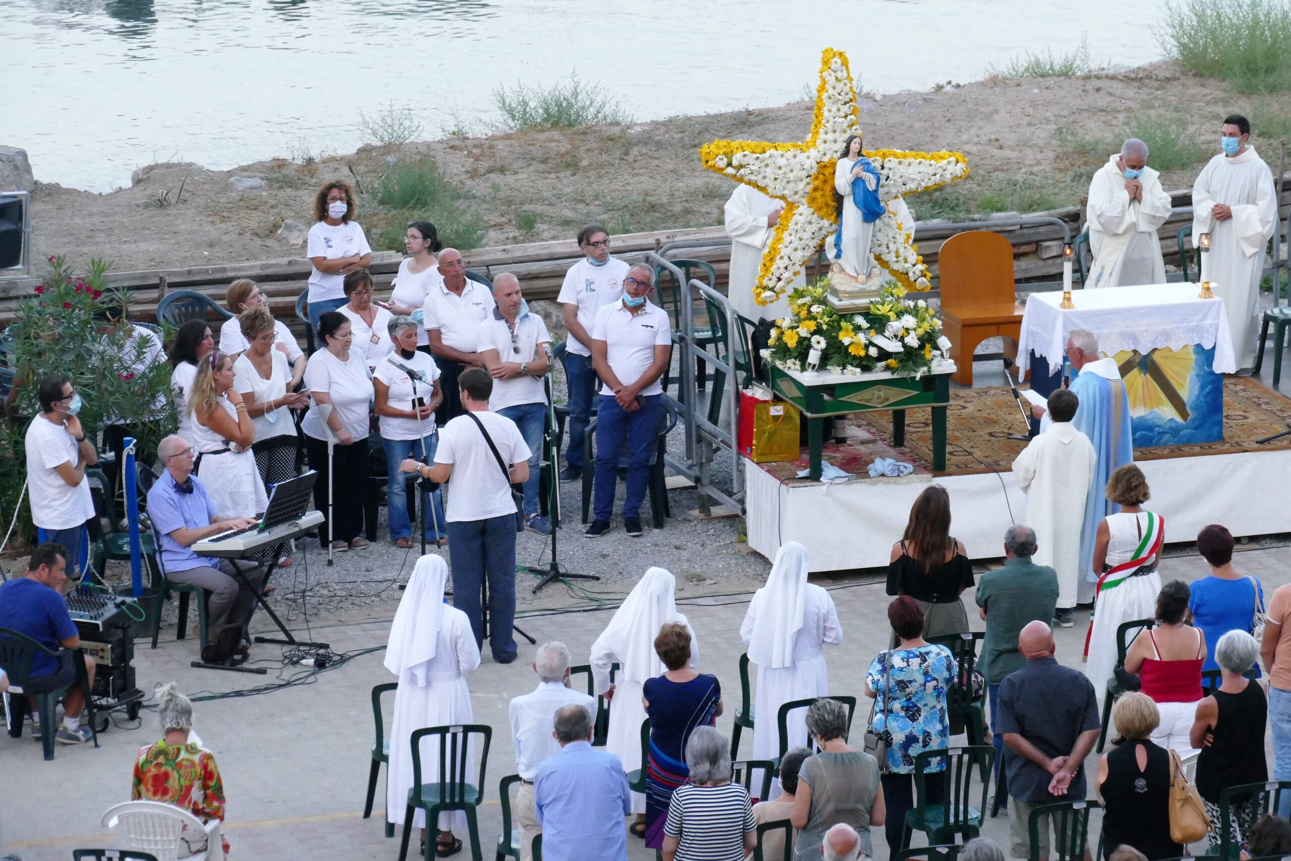 Vigilia della Festa dell’Assunta: Solenne Celebrazione Eucaristica al Porto di Presidiana. Ha celebrato il Parroco don Pino Cigno. A conclusione della Celebrazione Omaggio Floreale alle vittime del Mare. Presenti le Autorità Civili e Militari.