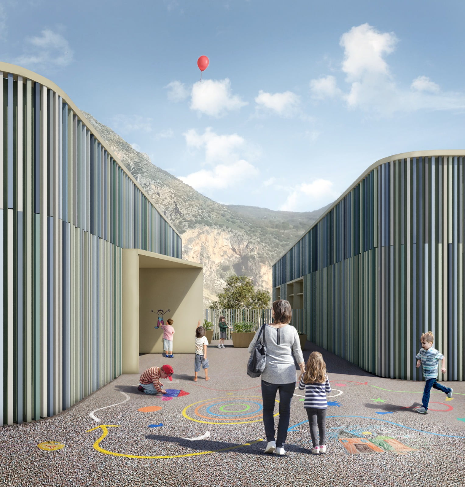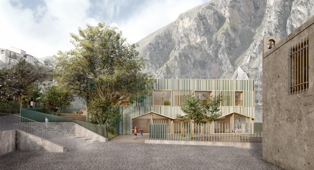 Sarà realizzata su 3 mila metri quadrati di fronte l’antica piazzetta dove si trova la chiesa di santa Lucia lungo la via Carmelo Virga. Quattro le macro aree progettate: aule, spazi informali, giardino e funzioni aperte alla comunità. Inoltre avrà un tetto giardino (dall’alto valore di mitigazione ambientale) e un rivestimento esterno che utilizzerà colori ma anche materiali della tradizione locale come la ceramica e il legno.