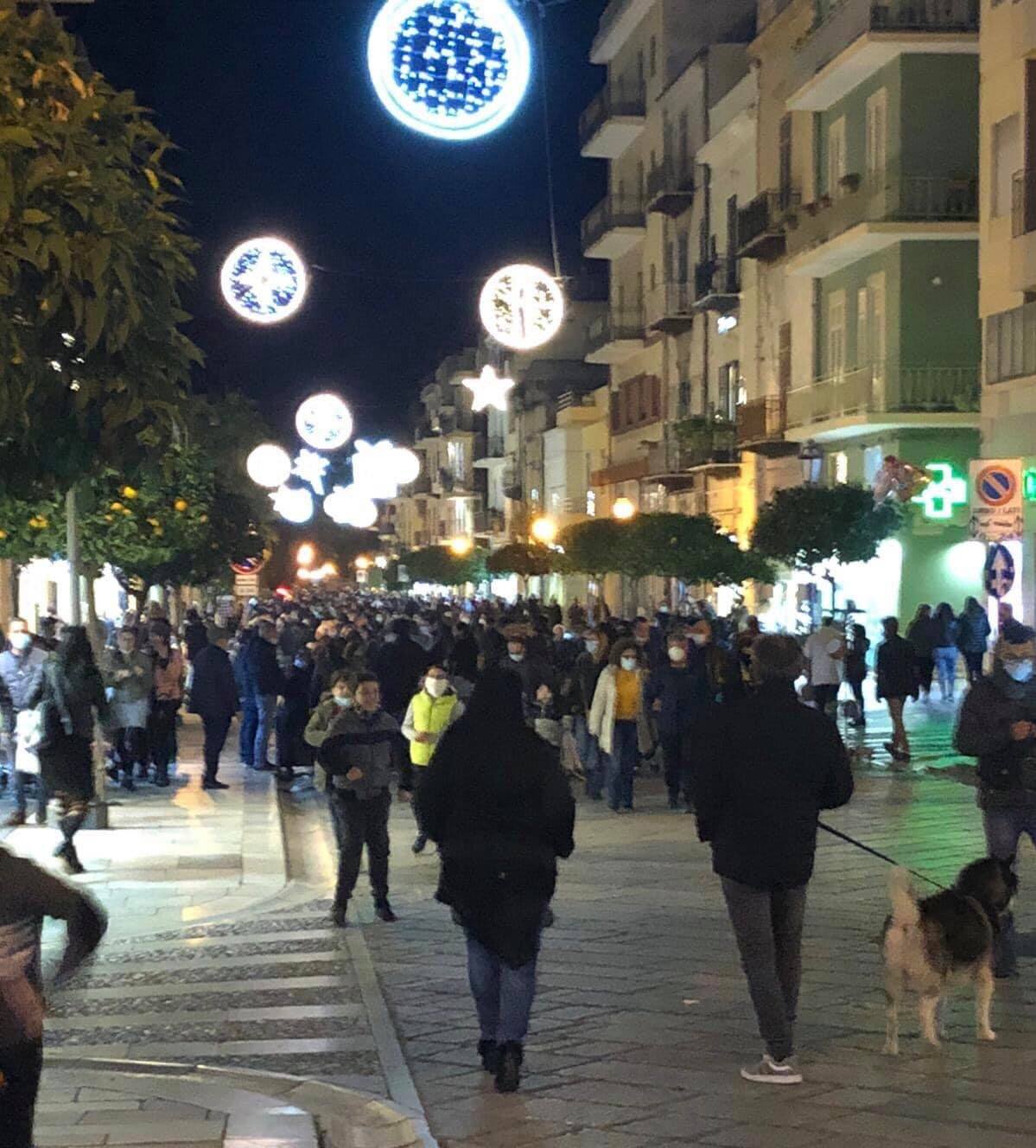 A Bagheria sono già morte 41 persone per coronavirus. I contagiati, invece, al momento sono 449. Tanti, tantissimo ma non per i tanti residenti che sabato 5 dicembre sono scesi su Corso Umberto come se non fosse mai successo niente. A raccontare tutto è la pagina facebook «Il pungolo Bagheria, Aspra e dintorni» che ha pubblicato una foto che mostra la folla di persone che si è riversata sul corso cittadino. «E’ stato il delirio con tanta gente assembrata, incurante dei pericoli che si corrono se non si rispetta il distanziamento. Tantissimi non hanno rinunciato alla passeggiata del sabato sera nonostante l’epidemia in provincia non accenni a diminuire sensibilmente. A Bagheria in base ai risultati dell’Asp, i positivi sono 449, a Ficarazzi 128, ad Altavilla Milicia 59, a Casteldaccia 79 e a Santa Flavia 89».