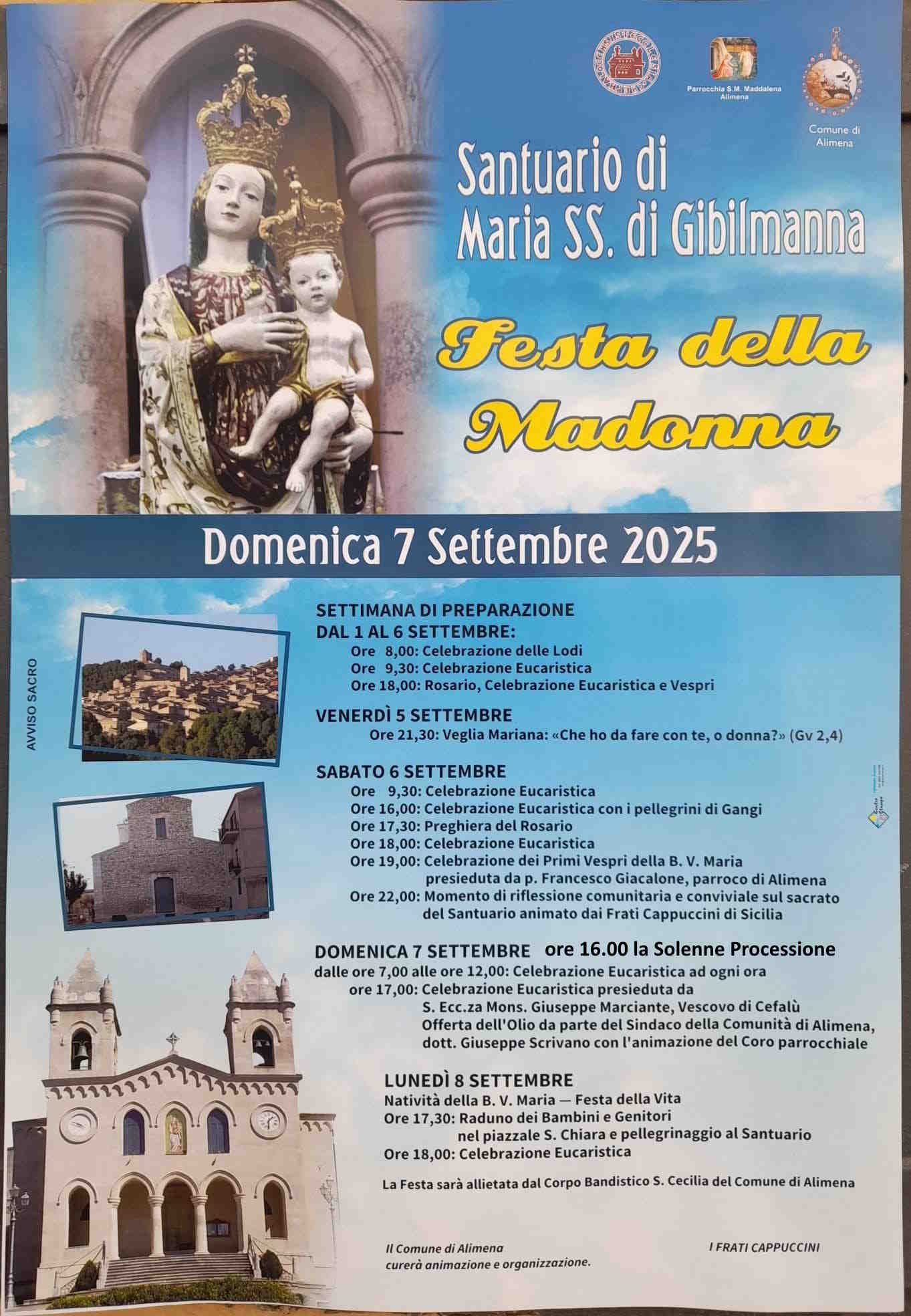 La comunità di Alimena si prepara anche quest’anno a vivere con profonda devozione la Festa della Madonna di Gibilmanna, appuntamento che da secoli unisce fede, tradizione e vita comunitaria attorno al Santuario mariano più caro ai madoniti. La celebrazione principale è fissata per domenica 7 settembre 2025, ma già nei giorni precedenti il Santuario si animerà di preghiere, liturgie e momenti di fraternità che accompagneranno i fedeli verso l’incontro con la Madre celeste.