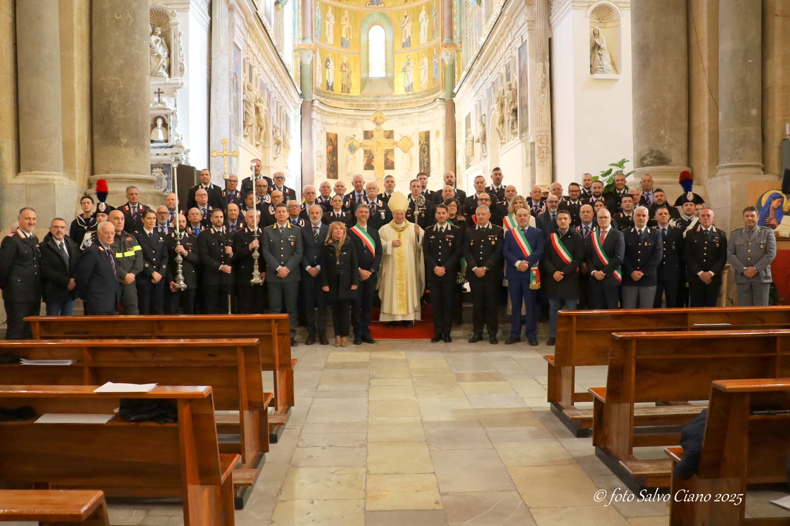 Nella Basilica Cattedrale di Cefalù (le foto sono di Salvo Ciano), patrimonio di fede e di arte normanna, si è celebrata questa mattina la Festa di Maria Santissima Virgo Fidelis, celeste Patrona dell’Arma dei Carabinieri. La liturgia è stata presieduta da S.E. Rev.ma Mons. Giuseppe Marciante, Vescovo di Cefalù, che ha rivolto parole di paterna vicinanza alle donne e agli uomini dell’Arma, riconoscendone la dedizione silenziosa e fedele a servizio del bene comune.