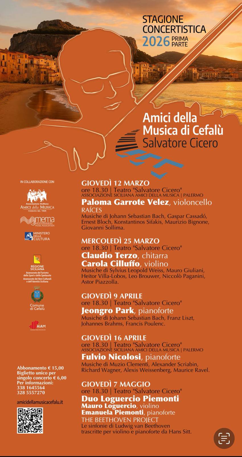 Con questa nuova stagione concertistica, Cefalù conferma ancora una volta la propria vocazione culturale, offrendo al pubblico un calendario di appuntamenti che unisce qualità artistica, varietà di repertorio e interpreti di riconosciuto prestigio nel panorama musicale internazionale.