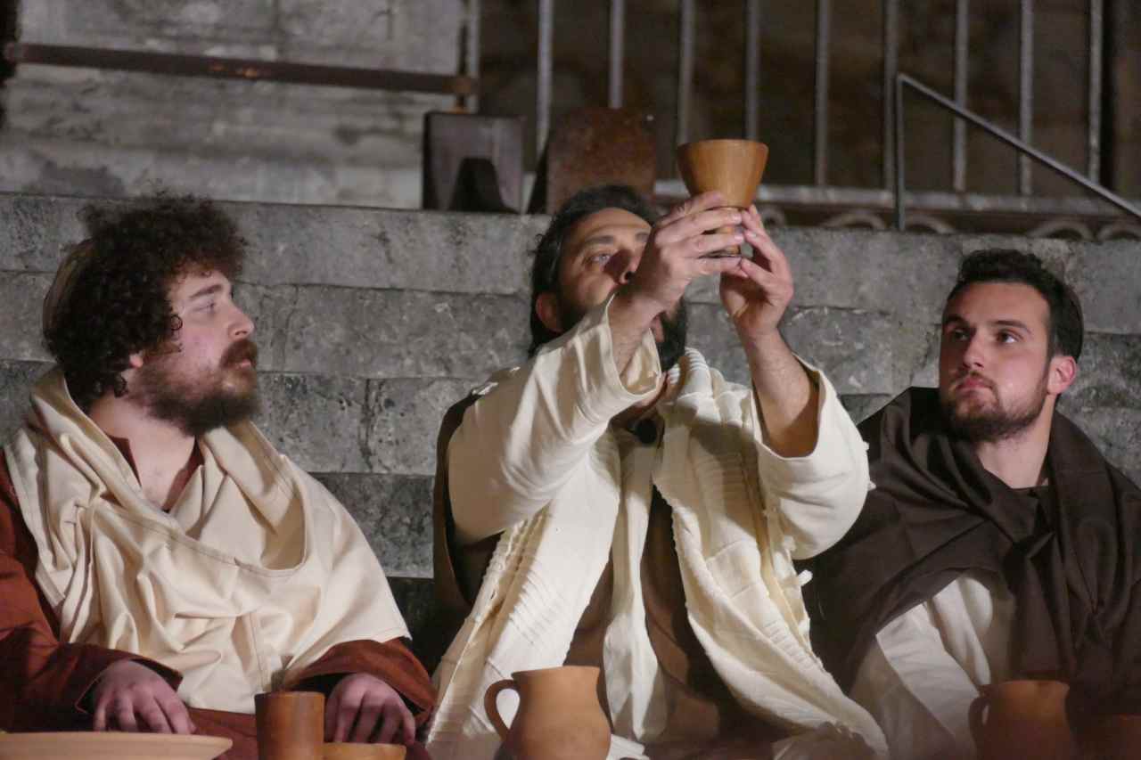 Circa duecento tra figuranti e attori danno vita ai momenti cruciali degli ultimi giorni di Gesù. La rappresentazione si snoda in forma itinerante attraverso la piazza e le vie circostanti del centro storico: dall’ingresso trionfale a Gerusalemme, con la folla che acclama il Cristo come Re, alle preghiere nell’orto del Getsemani, dalla flagellazione all’incoronazione di spine, dall’ascesa al Calvario fino al momento struggente della Crocifissione, che ogni anno fa trattenere il fiato ai presenti. Non è semplice teatro, ma un’esperienza che unisce narrazione evangelica, arte drammatica e partecipazione comunitaria.