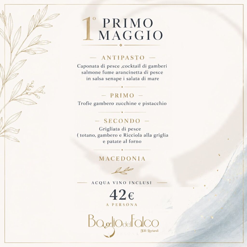 Se stai cercando un ristorante per il 1 Maggio 2026 a Cefalù, il Baglio del Falco è una scelta concreta e di qualità. Offre un’esperienza completa fatta di buon cibo, relax e atmosfera autentica.